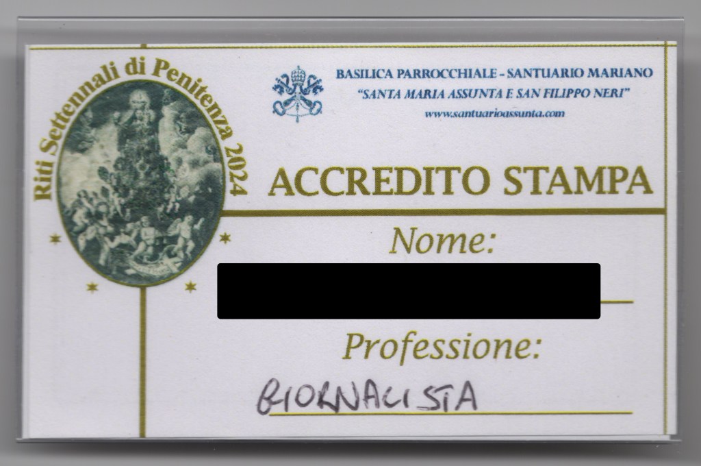 That evening we picked up my press kit, full of documentation about the event and a press badge. Back in the rental house, we rested, looking forward to the processione generale taking place the day after.